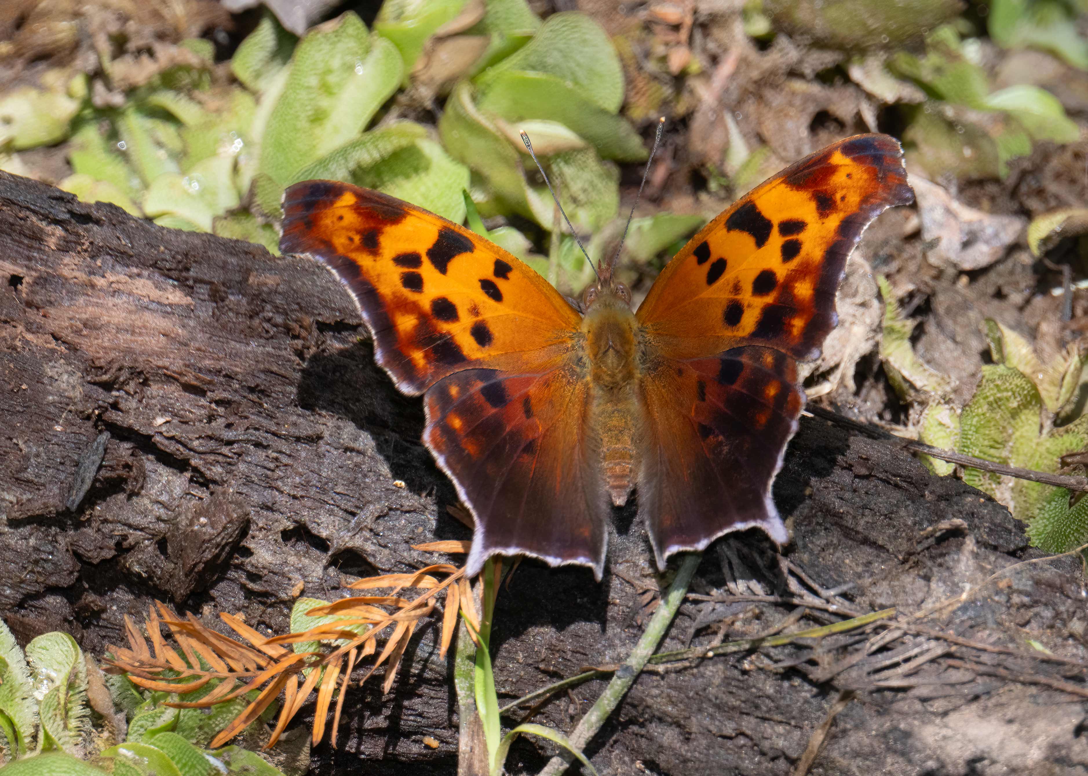 Question Marks often make their first appearance during unseasonably warm days in February. These individuals are overwintering adults. Question Marks are not tightly brooded, and may be encountered almost anytime.