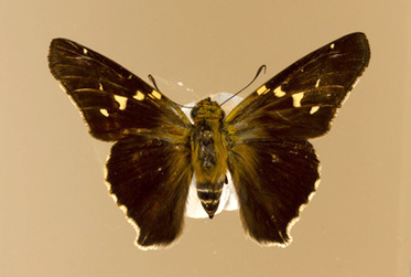 Mercurial Skipper is known only from a single specimen photographed by Michelle Miklik. It was documented at Cane Creek Community Garden, a four-acre site in Anniston that was formerly part of Fort McClellan's army weapons training program. In 2015, work began to transition the area into an educational garden run by the Calhoun County Extension Service. The Mercurial Skipper appeared in June 2017. This surprising skipper appeared just after a significant tropical storm had traversed the state of Alabama. Some experts believe that it could have been blown in ahead of the storm. Normal distribution is tropical to subtropical as it ranges from Cuba, West Indies islands, Mexico, Argentina, southern Texas, southern Arizona, and central Florida.