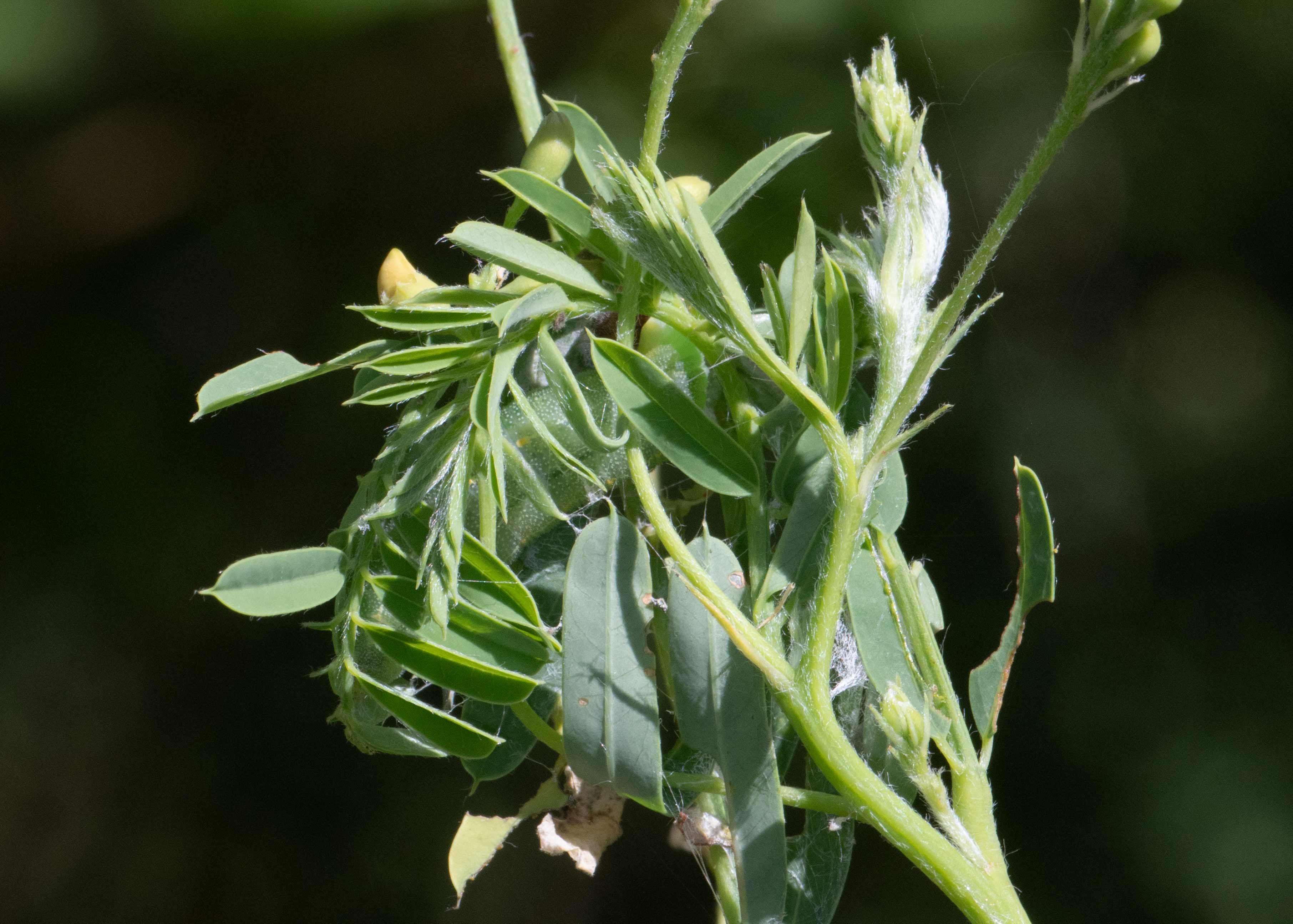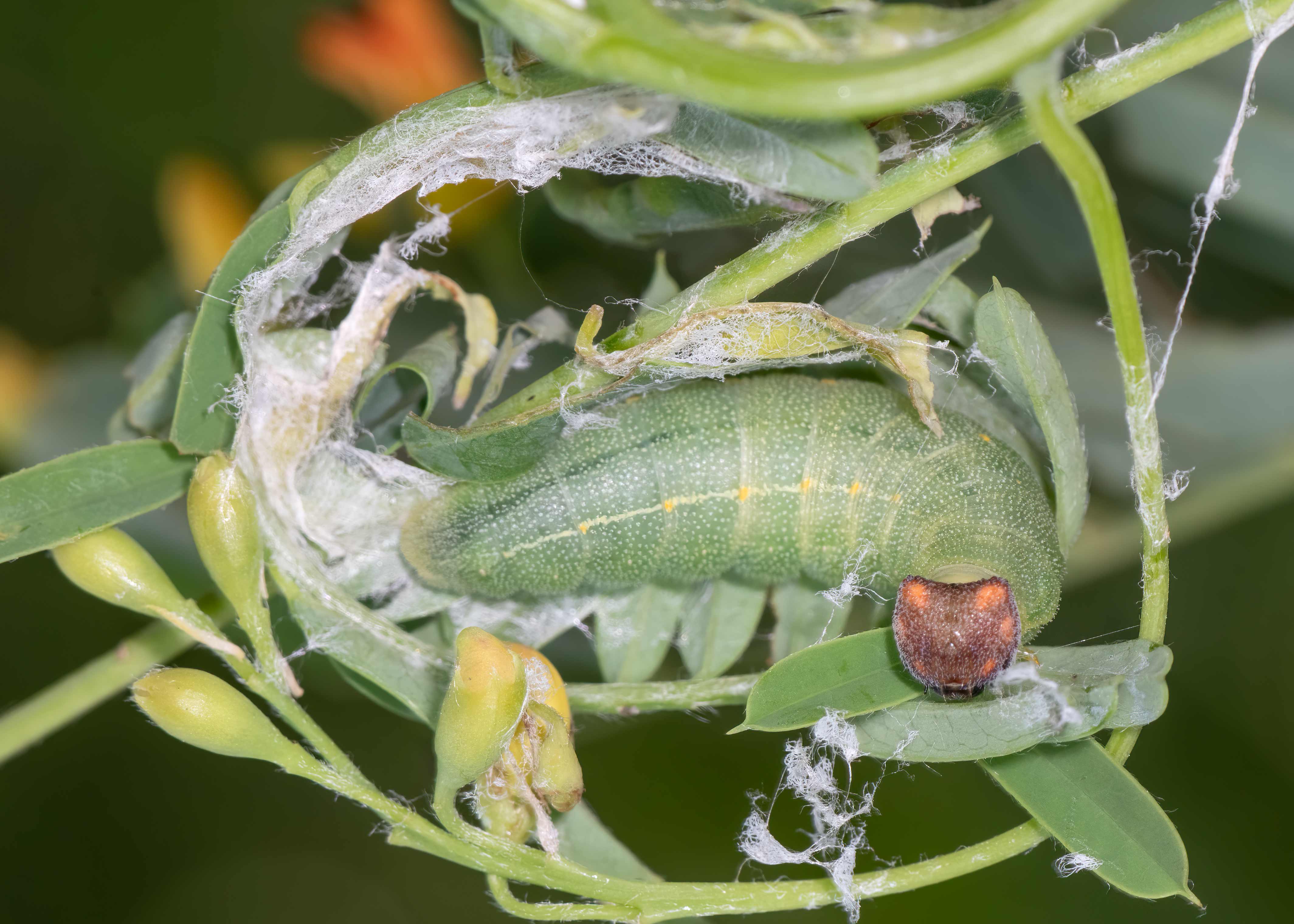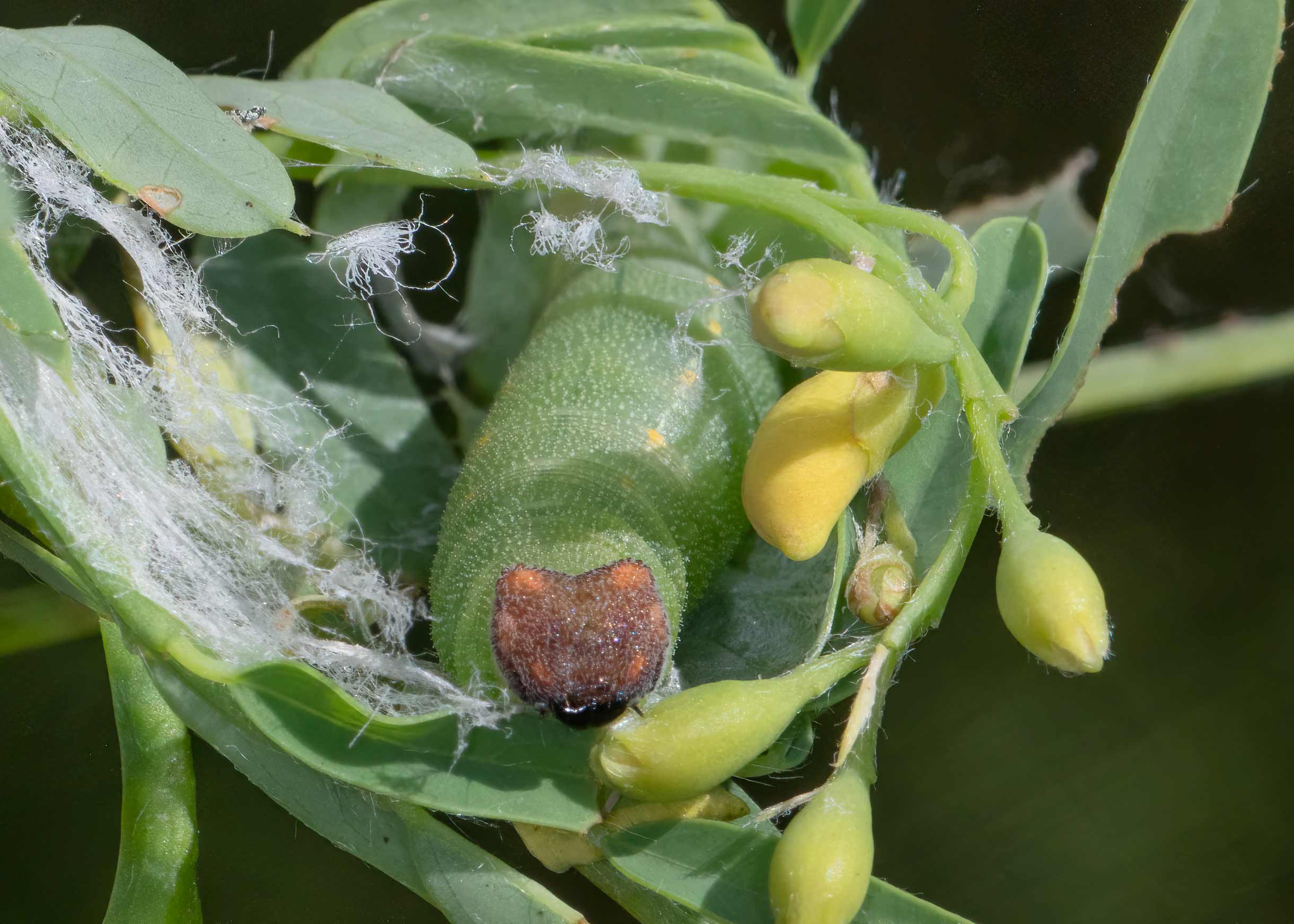 Reports from nearby states indicate that larvae feed on a wide varielty of legumes including Hairy Bush Clover (Lespedeza hirta), Carolina Indigo (Indigofera caroliniana), and vetches (Vicia spp.).