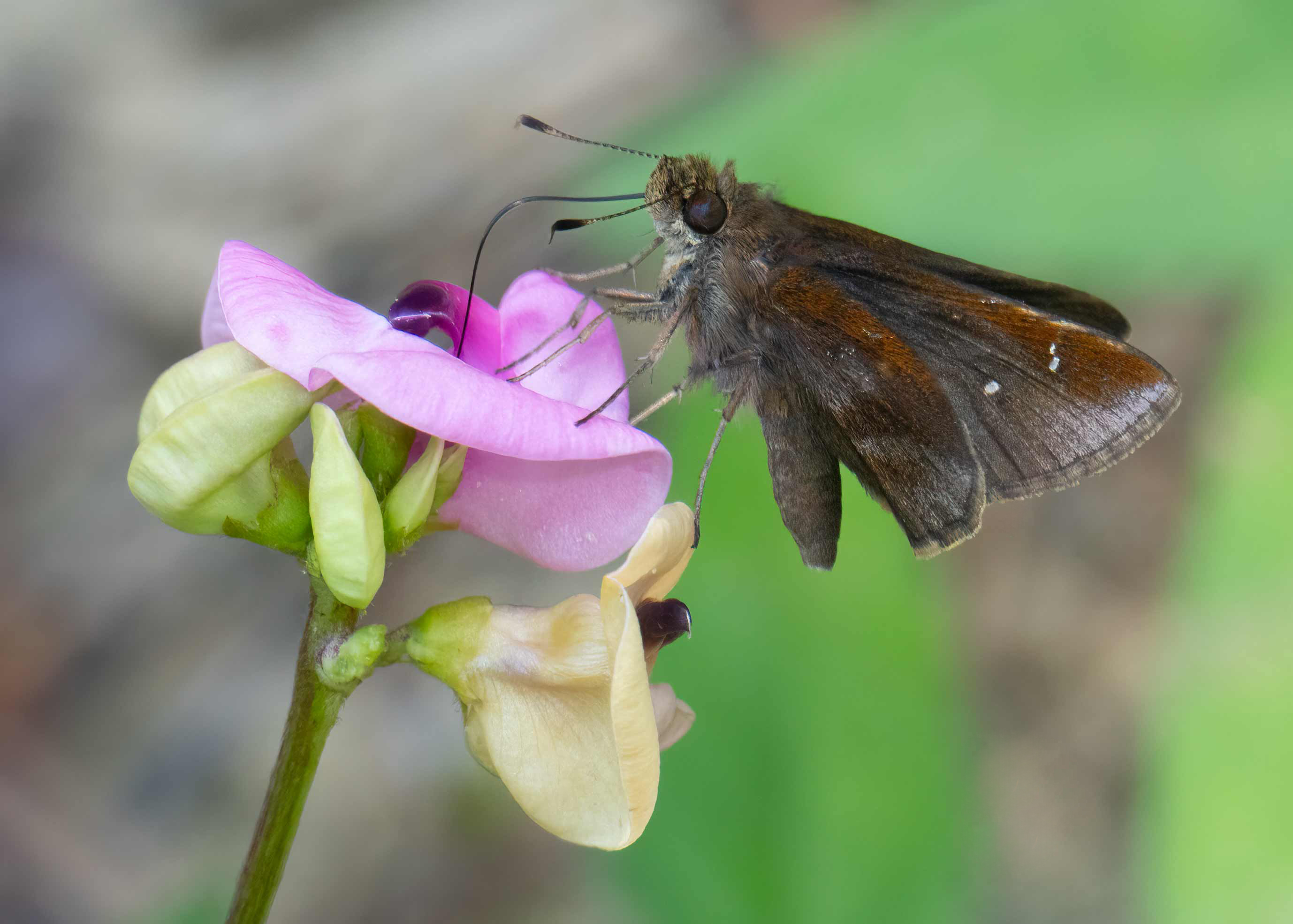 These handsome skippers are based in the southern U.S. and Central America. Each summer, their populations expand northward, but contract again with winter freezes. In Alabama, Clouded Skippers are multi-brooded and have been documented in every county.